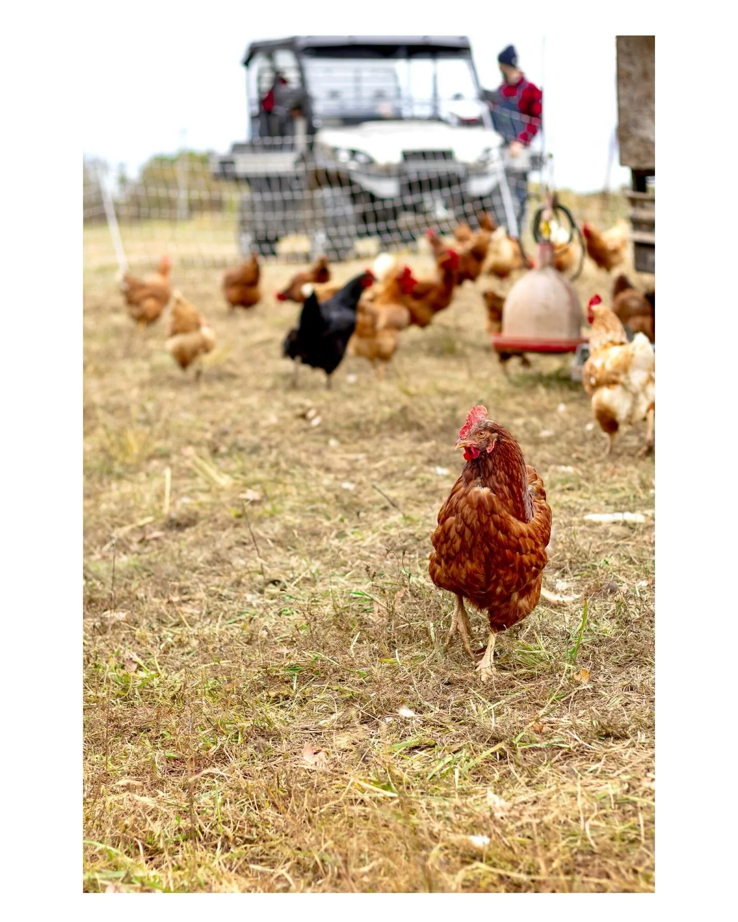 Our laying hens are free to roam outdoors all year long.