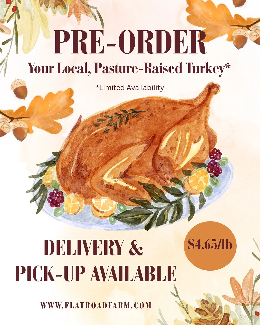 Pasture-Raised Turkeys: $4.65 per lb